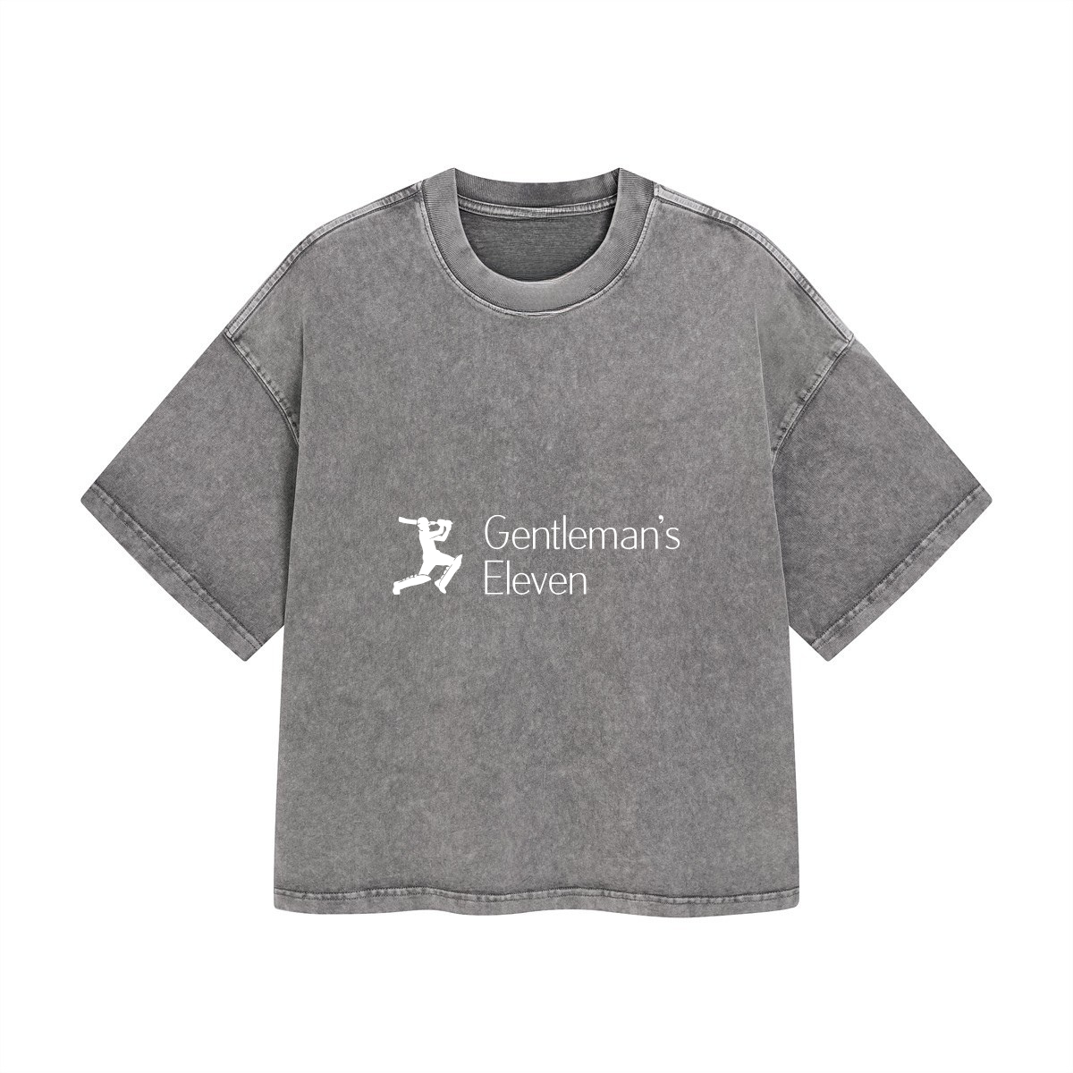 Make a contemporary statement with this Grey Cropped Boxy T-Shirt from Gentleman’s Eleven. This modern women’s/unisex crop top features soft heather grey cotton with vintage wash finish and relaxed cropped length. White embroidered logo and “Gentleman’s Eleven” text on chest add refined branding. Oversized boxy silhouette with dropped shoulders, wide body cut, crew neckline, and raw hem edges. The cropped design hits at waist for trendy styling. Perfect for pairing with high-waisted joggers, jeans, or shorts, creating athletic streetwear looks, or layering over sports bras. The versatile grey tone and cricket heritage character deliver effortless contemporary style.