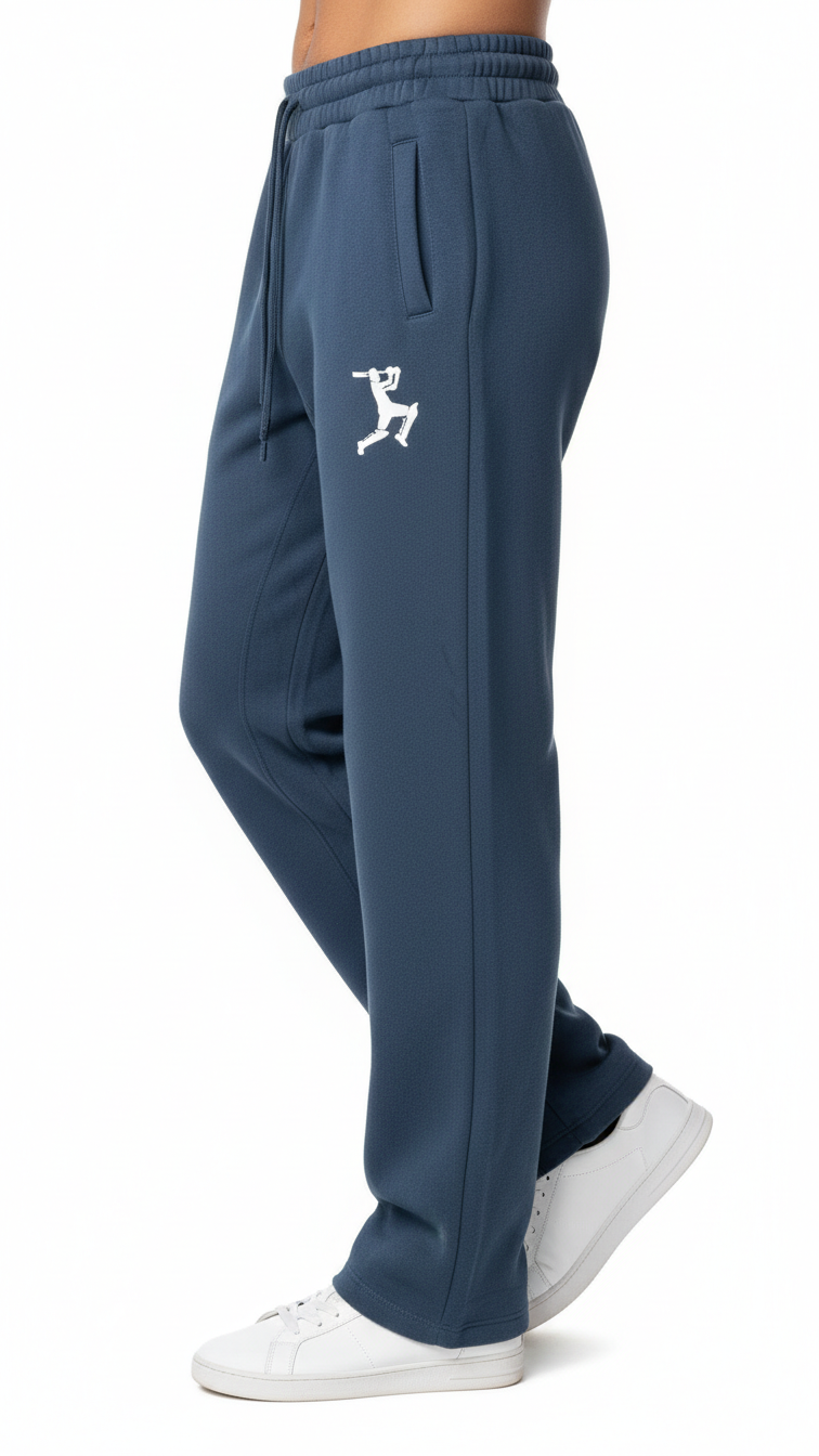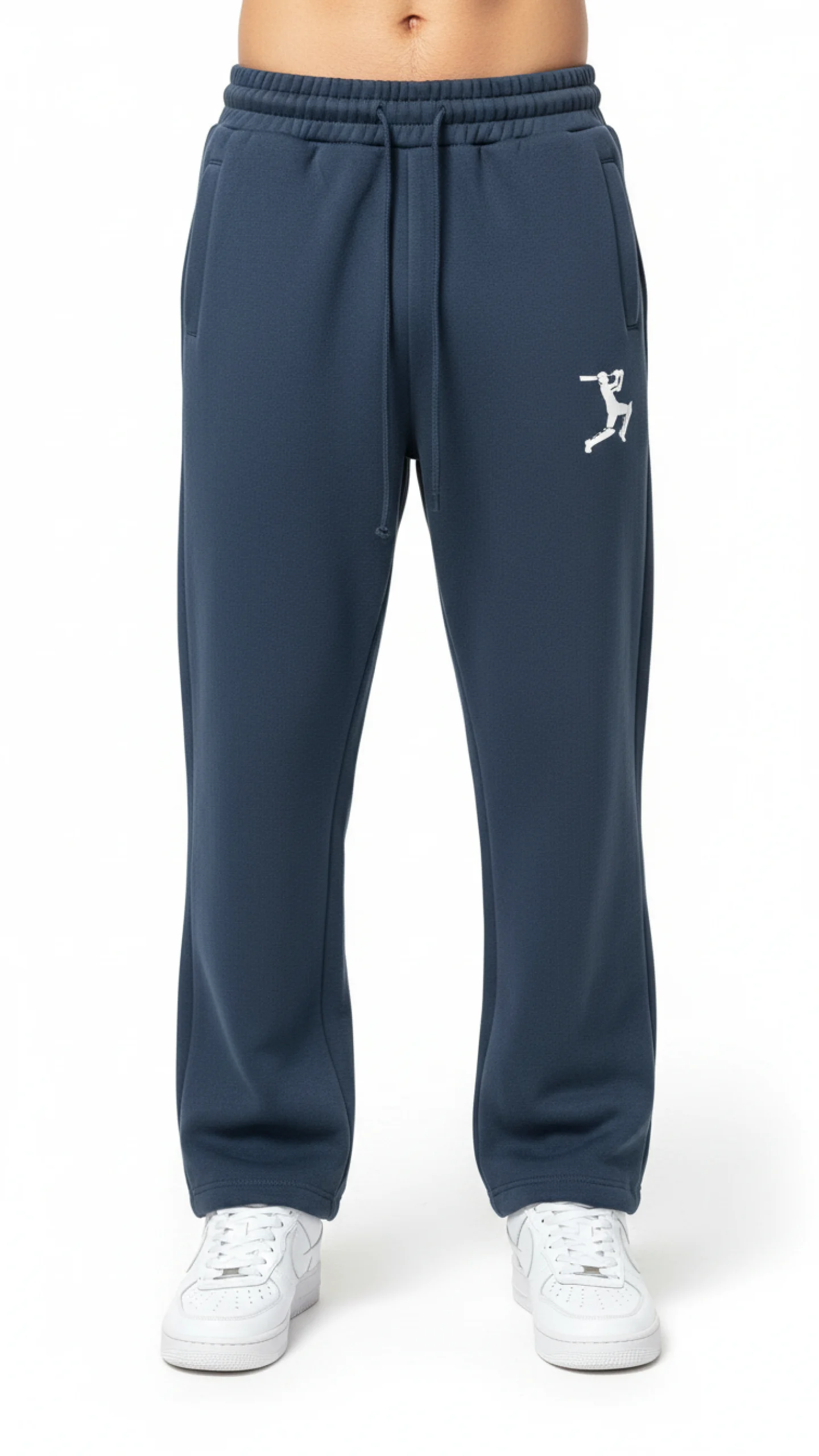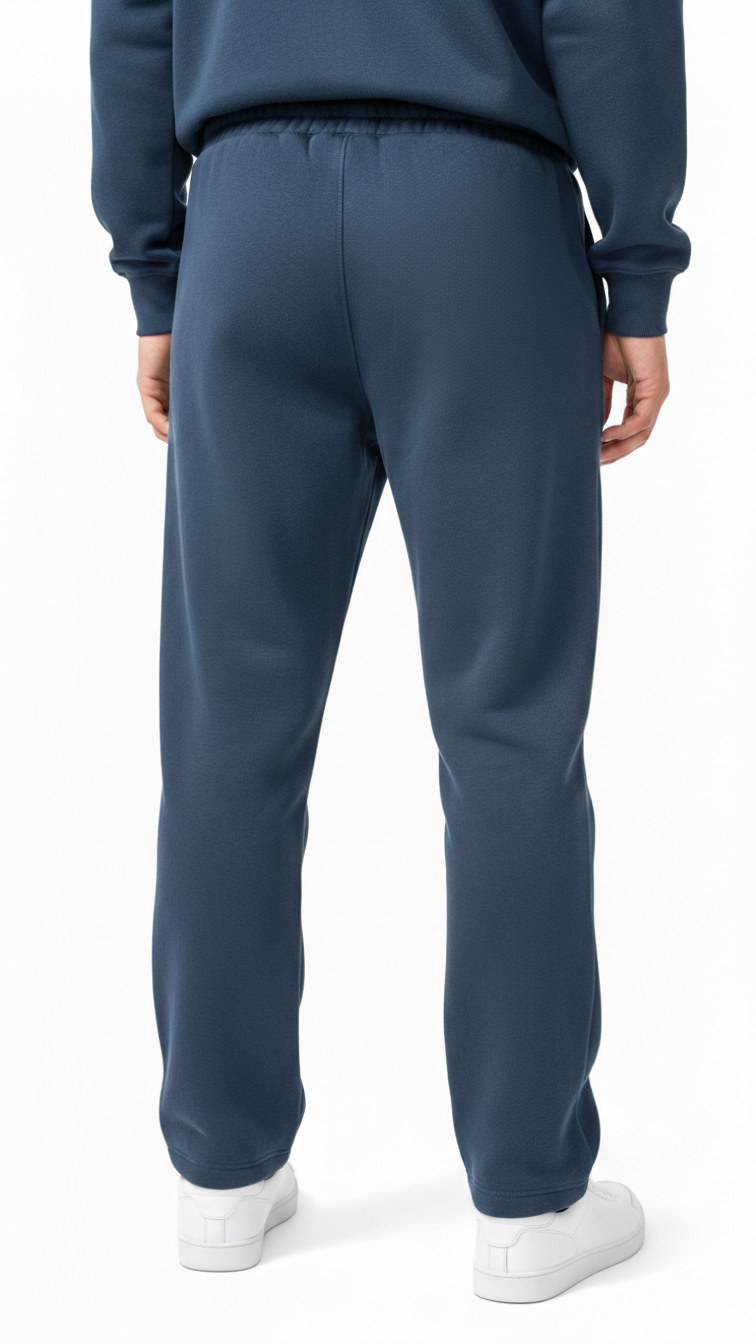 Essential navy blue lounge pants in premium cotton fleece. Classic men’s joggers with versatile styling and luxury sportswear quality.