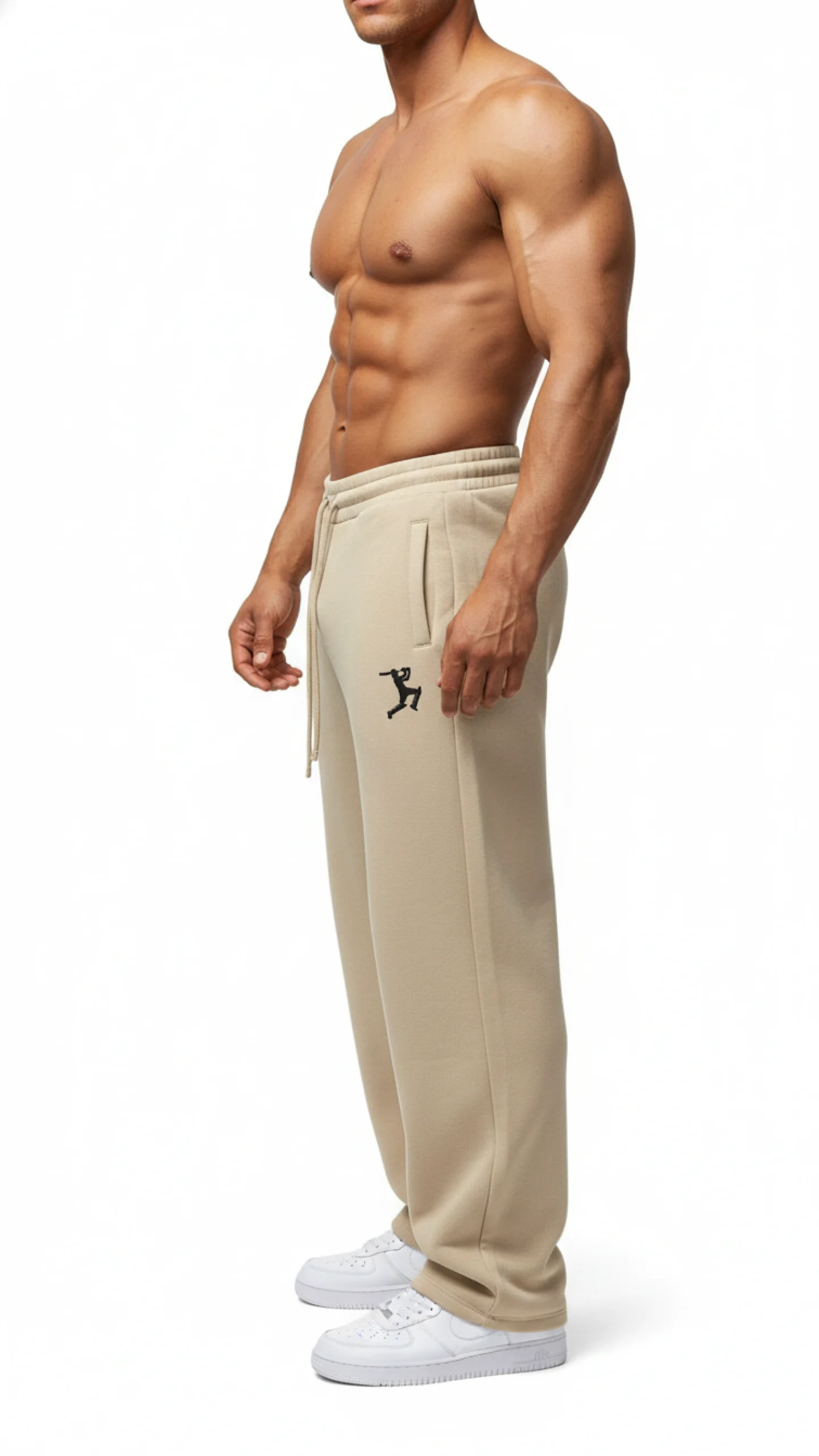 Luxury sand beige sweatpants in premium cotton. Neutral men’s joggers offering sophisticated versatility and heritage-inspired style.